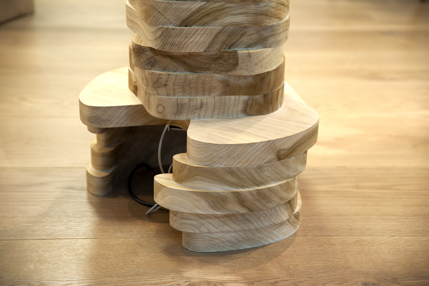 Floor lamp made with Toulipier natural wood.